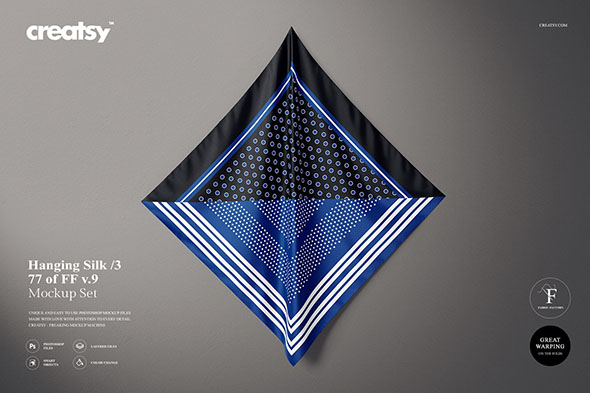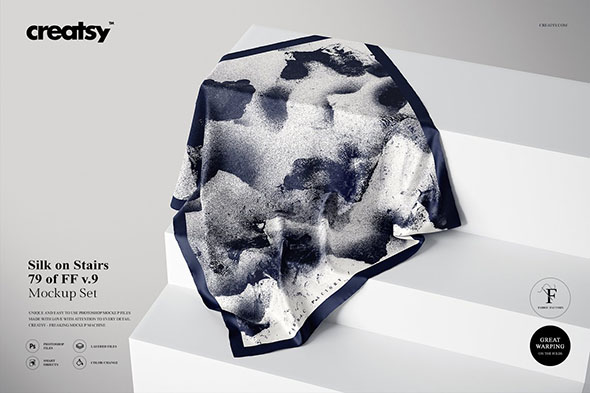 正方形褶皱真丝巾方巾织物场景模拟效果展示样机mockup智能贴图ps