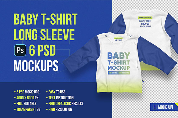 婴儿宝宝T恤长袖模拟效果展示样机mockup智能贴图psd设计素材模版