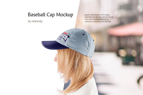 棒球帽鸭舌帽模特效果展示样机mockup智能贴图psd设计素材模版