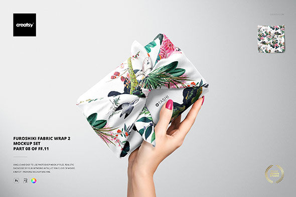 手持日式和风布艺绸缎礼品包装印花设计贴图ps样机素材展示模板