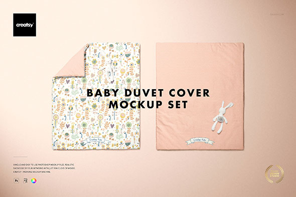 婴儿被套多角度模拟效果展示样机mockup智能贴图psd设计素材模版