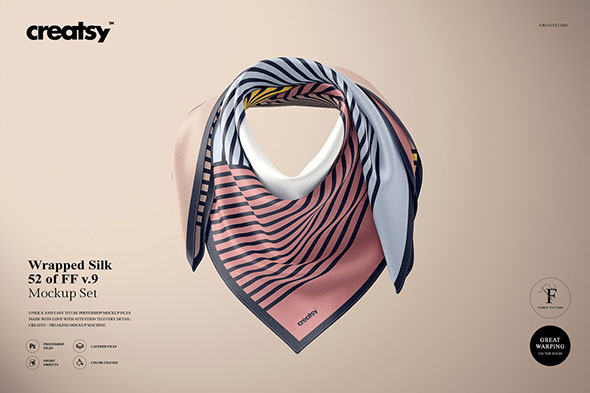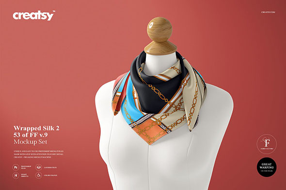 丝巾围巾织物多角度模拟效果展示样机mockup智能贴图psd素材模版