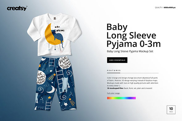 儿童长袖睡衣模拟效果展示样机mockup智能贴图psd设计素材模版