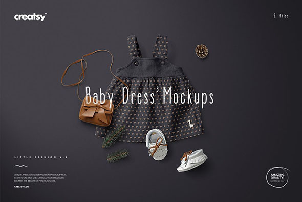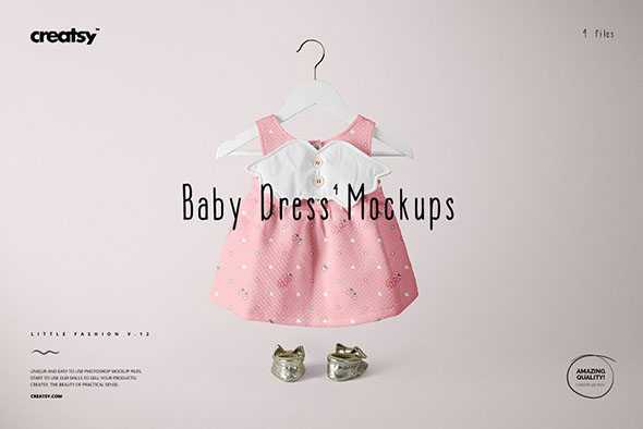 婴儿幼儿连衣裙穿搭效果展示样机mockup智能贴图psd设计素材模版