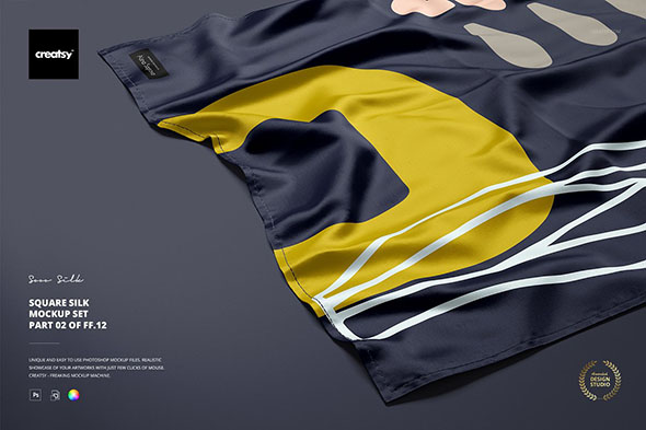 方形丝巾织物多角度模拟效果展示样机mockup智能贴图psd素材模版