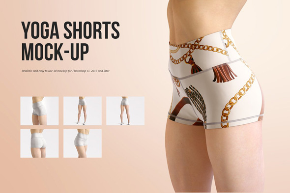 女性瑜伽运动健身短裤多角度模拟效果展示样机