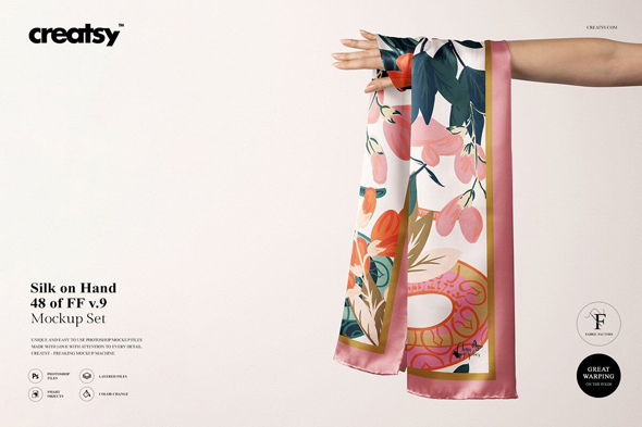 手持丝巾丝绸织物场景模拟效果展示样机mockup智能贴图ps素材模版