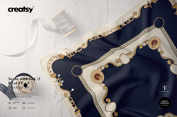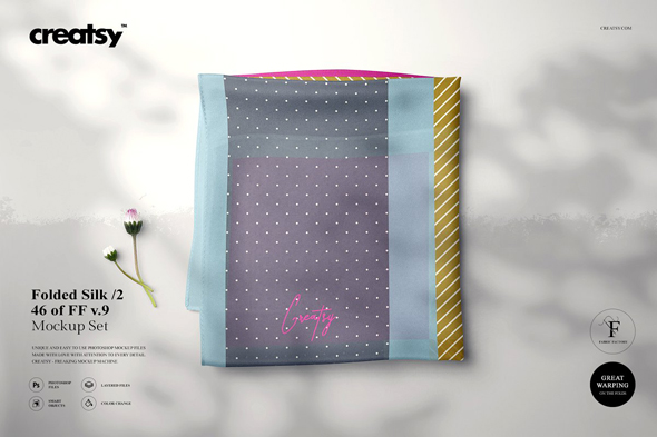 丝巾丝绸折叠面料织物效果展示样机mockup
