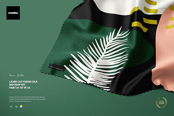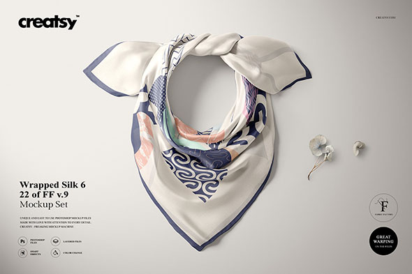 丝绸丝巾布料褶皱效果模拟展示样机mockup