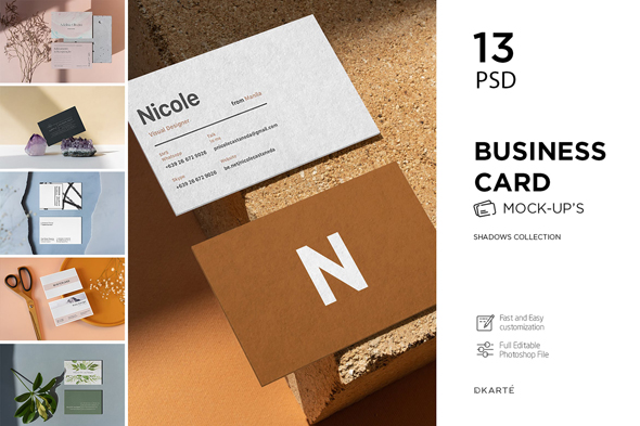 13款名片自然光影效果展示样机mockup智能贴图psd设计素材模版