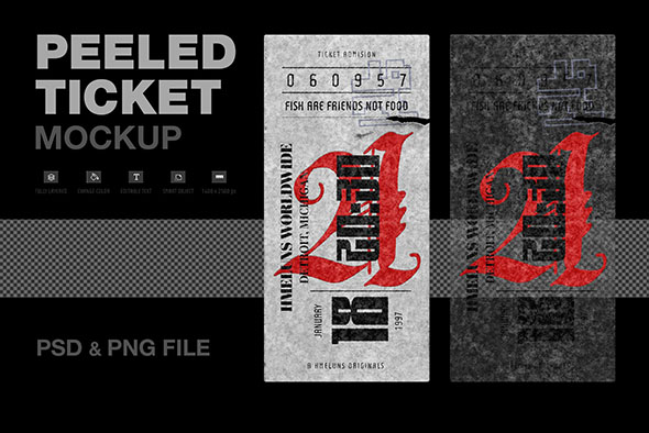 潮流做旧撕裂机票票务设计展示样机mockup智能贴图ps设计素材模版