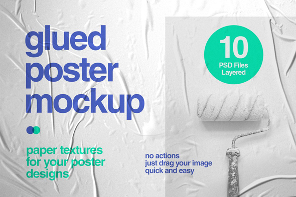 10款褶皱海报墙贴效果展示样机mockup智能贴图psd设计素材模版