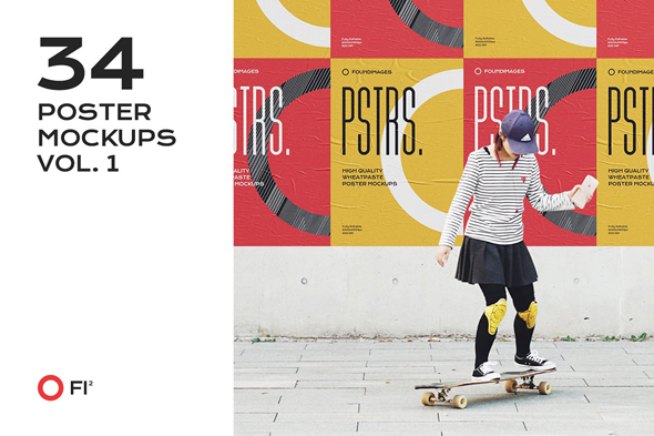 34款户外褶皱海报场景模拟效果展示样机mockup智能贴图ps素材模版