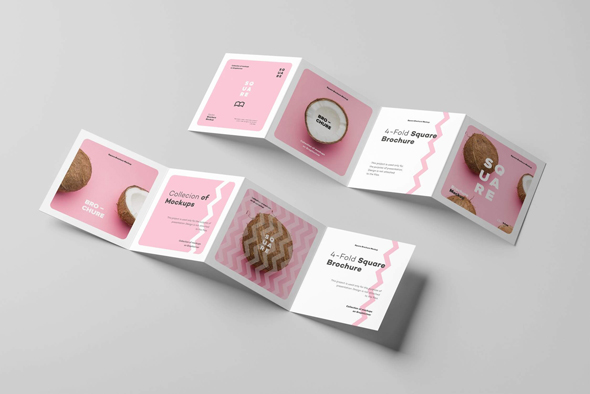 方形四折页宣传手册多角度模拟效果展示样机mockup智能贴图ps素材