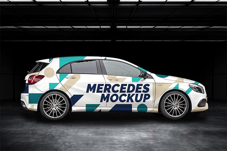 轿车汽车多角度模拟效果展示样机mockup智能贴图psd素材模版