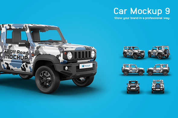 越野车多角度模拟效果展示样机mockup智能贴图PS设计素材模版