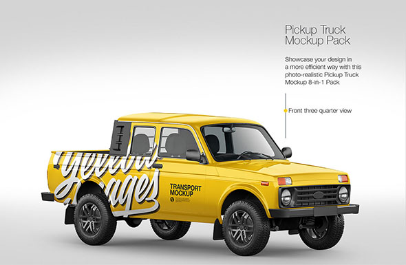小型敞蓬载货卡车多角度模拟效果展示样机mockup智能贴图psd素材