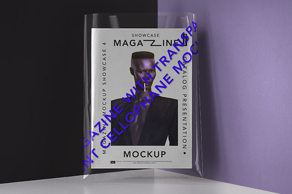 杂志潮流塑料包装袋效果设计展示样机mockup智能贴图psd素材模版
