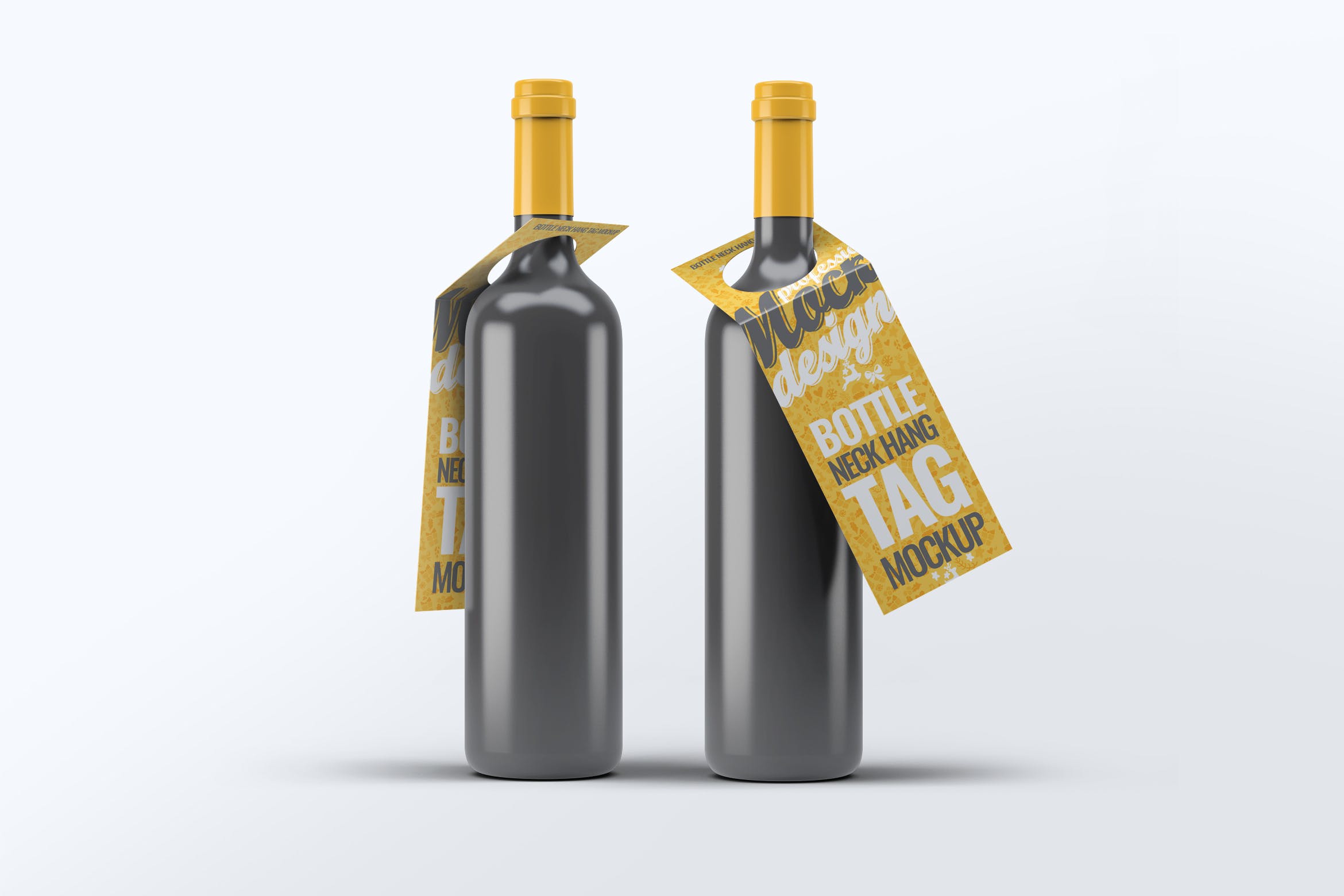 红酒酒瓶瓶颈挂牌标签设计展示效果图样机