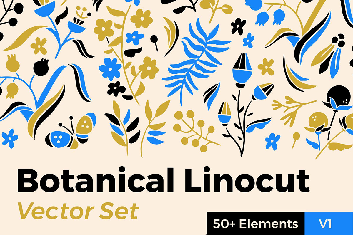 Botanical Linocut Vector Set