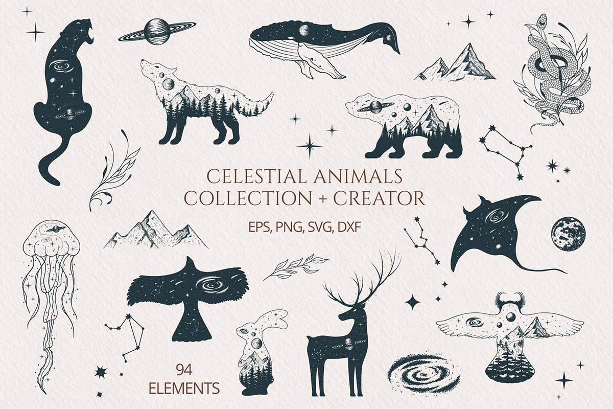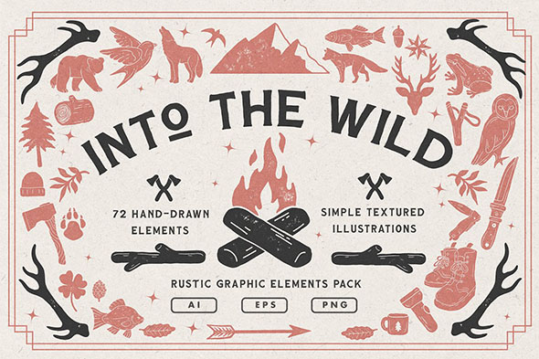 复古户外动植物树枝黑色剪影版画风格插图设计素材 EPS模版