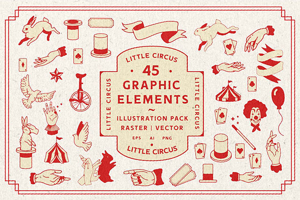 45款马戏团单线描画手绘图形元素门票品牌海报元素矢量模版AI格式