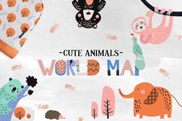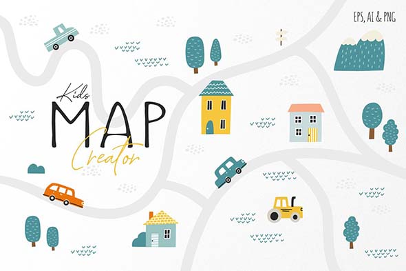 儿童插画地图路标房屋建筑插画图形设计矢量素材模版 EPS格式