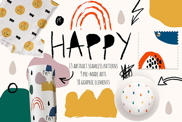 趣味多彩缤纷无缝拼接手绘印花插画图案背景纹理ai设计素材源文件