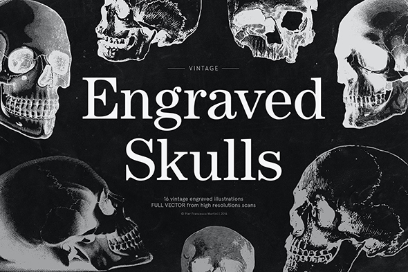 复古做旧头骨版画插图解剖学图案元素设计素材模版 EPS格式
