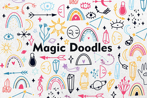手绘卡通儿童涂鸦魔法彩虹背景设计图案矢量设计素材模版 EPS格式