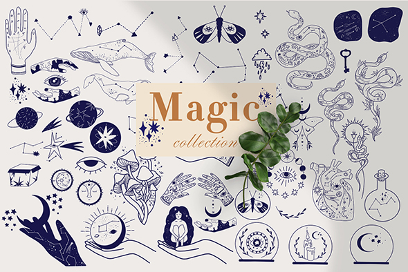 47款梦幻魔术师月亮宇宙插图元素底纹背景AI格式设计素材