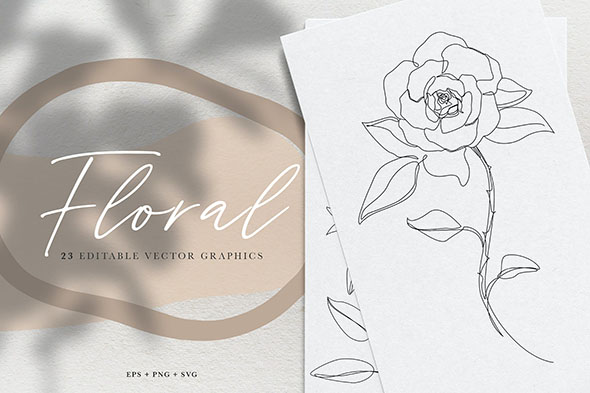 23款钢笔花卉植物草图艺术插画底纹图案背景素材模版Ai矢量格式