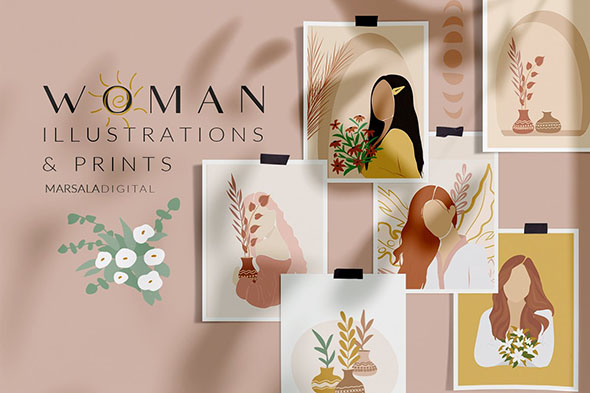 20款优雅轻奢女性手绘插画插图矢量设计素材EPS格式
