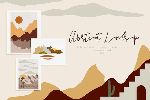 抽象户外景观植物风景插画剪贴画明信片海报矢量设计模版EPS格式