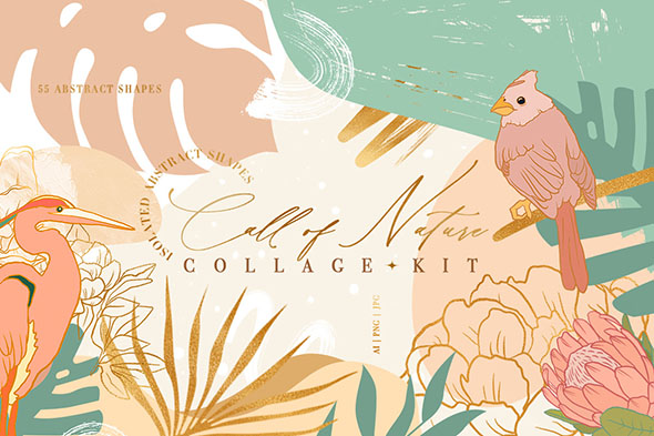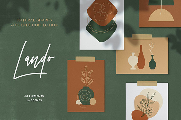 60款自然手绘植物抽象元素底纹图案背景设计素材 EPS矢量格式