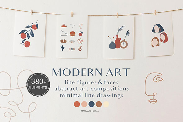 现代极简植物花卉剪贴画艺术插画纹理图案背景设计素材EPS模版