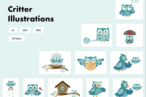 20款卡通可爱猫头鹰插画插图ui界面设计配图eps矢量sketch素材