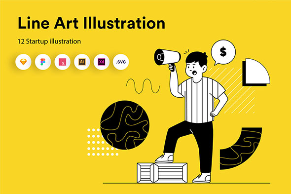 100款有趣单色风格人物场景插图插画EPS矢量设计素材 Sketch格式