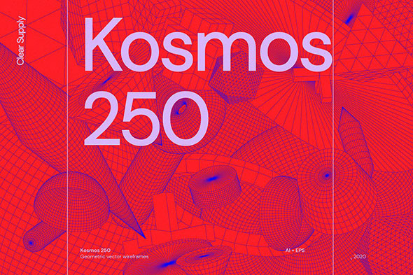 250款抽象3D立体几何线框艺术图形矢量设计素材 EPS格式