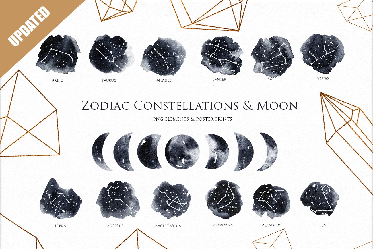 暗黑水彩手绘月食艺术风格插画