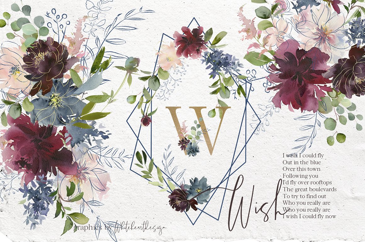 艺术婚礼花卉花环字母元素素材