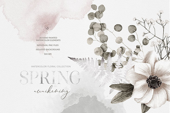 绿植玫瑰树枝花束花瓣婚礼贺卡元素设计素材分层PSD格式