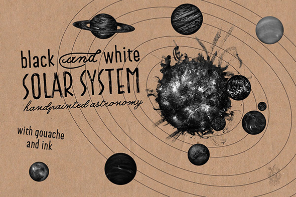 Solar System with gouache and ink