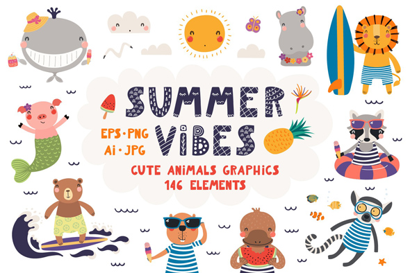 水彩手绘儿童涂鸦森林动物蝴蝶无缝图案