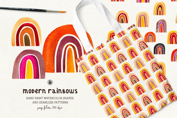 现代儿童手绘水彩彩虹无缝图案背景素材