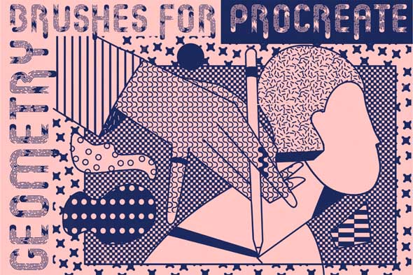 高端procreate笔刷 80款自然圆圈圆点条纹单元格图案颗粒绘画工具