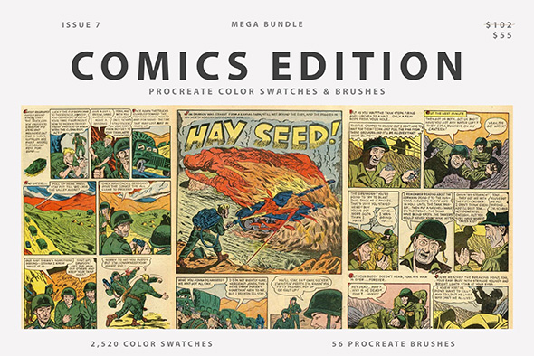62款procreate高级笔刷70年代复古插画油墨平面插画素材笔刷