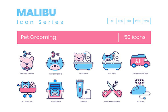 50款宠物美容商店洗浴水疗单线图标icon标识模版 EPS矢量格式