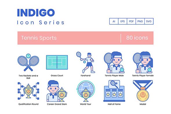 80款网球运动奖牌奖杯资格赛赛程门票单线图标Icons标识矢量模版