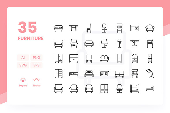 3000+款商业生活智能家居用户界面单线图标icon标识素材SVG格式